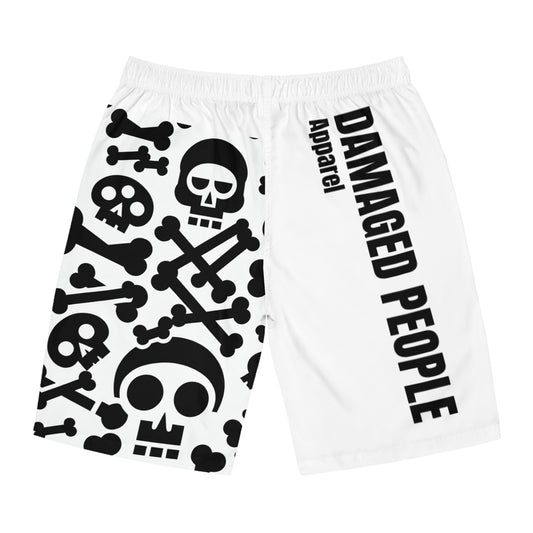Damaged People Skull Print Men's Board Shorts - Edgy Summer Swimwear