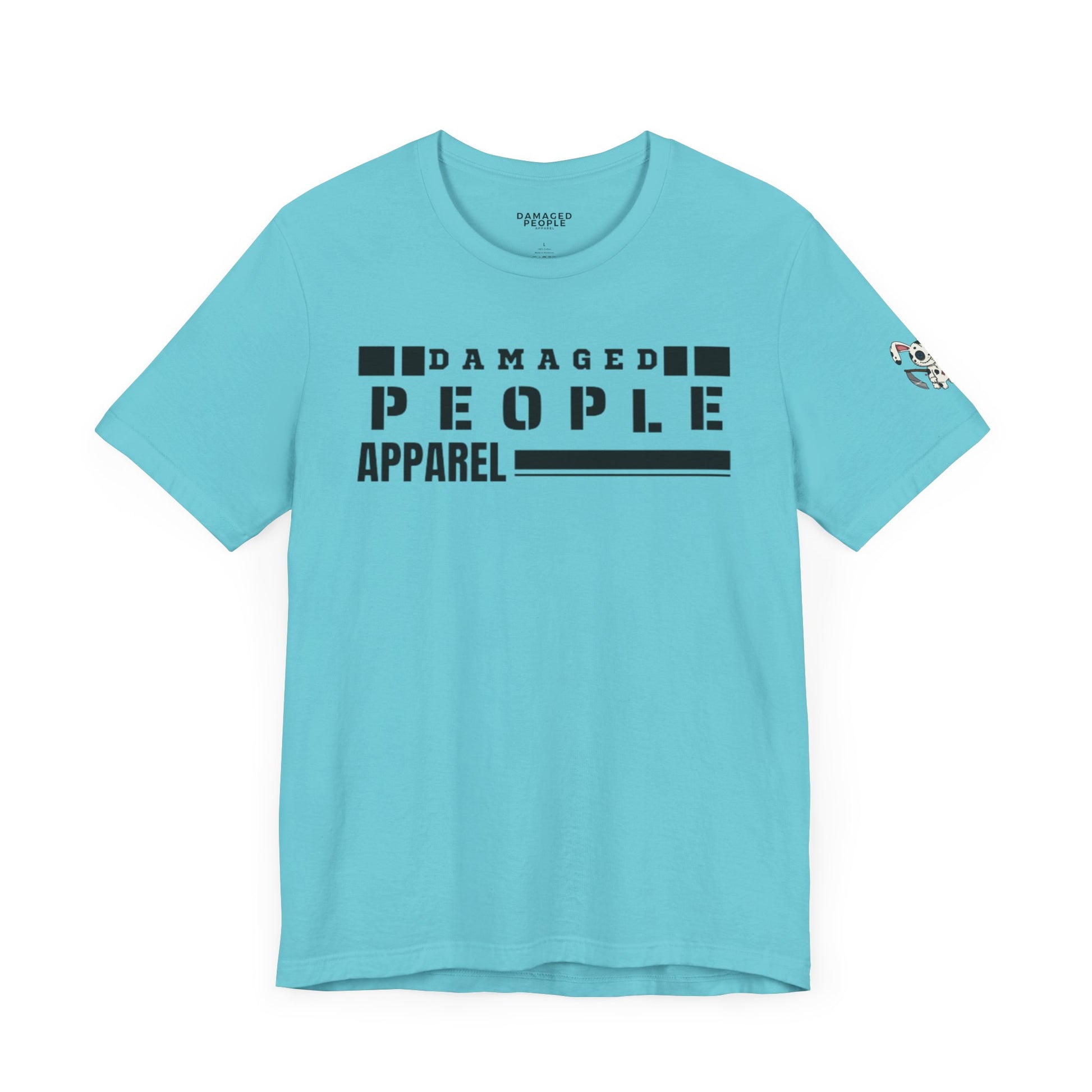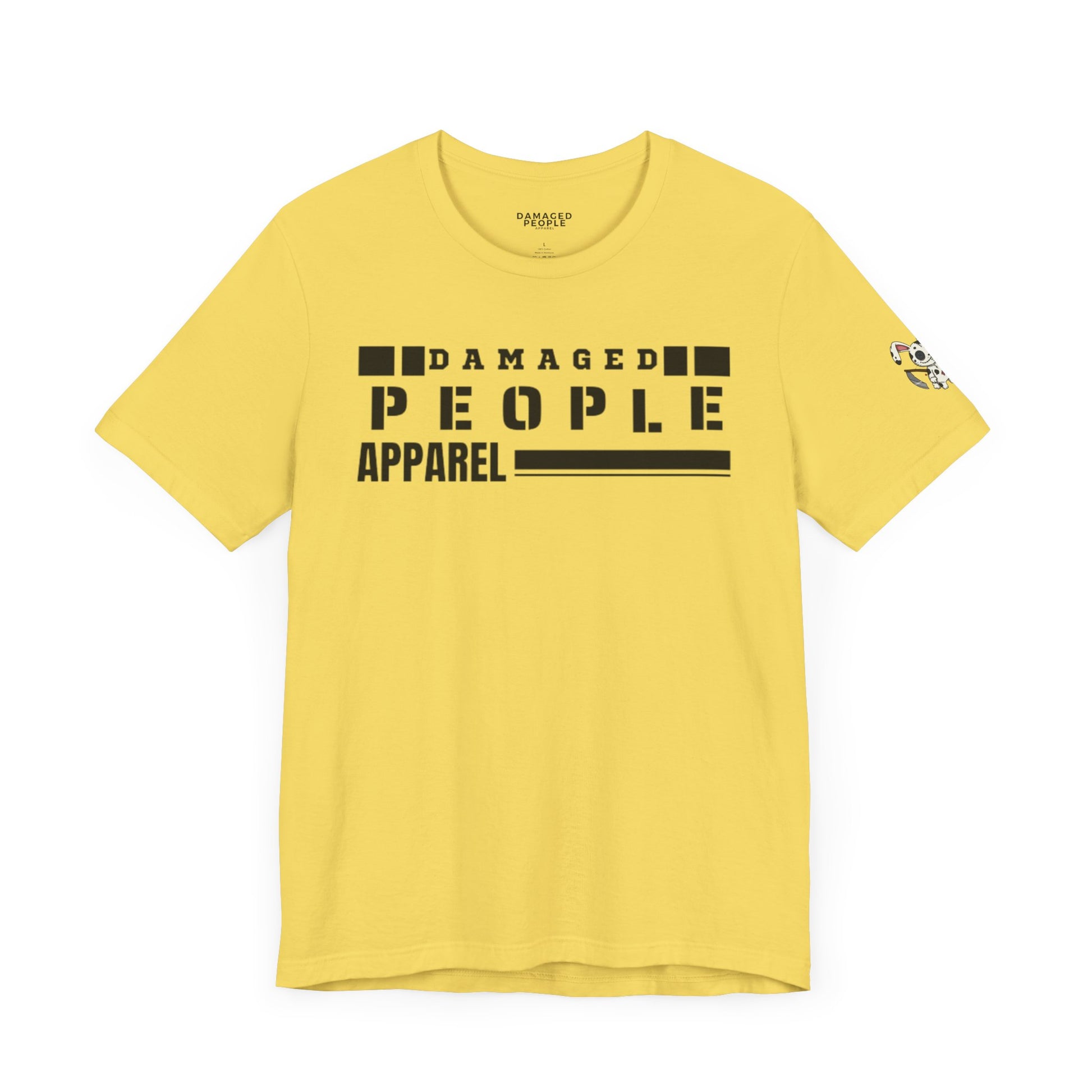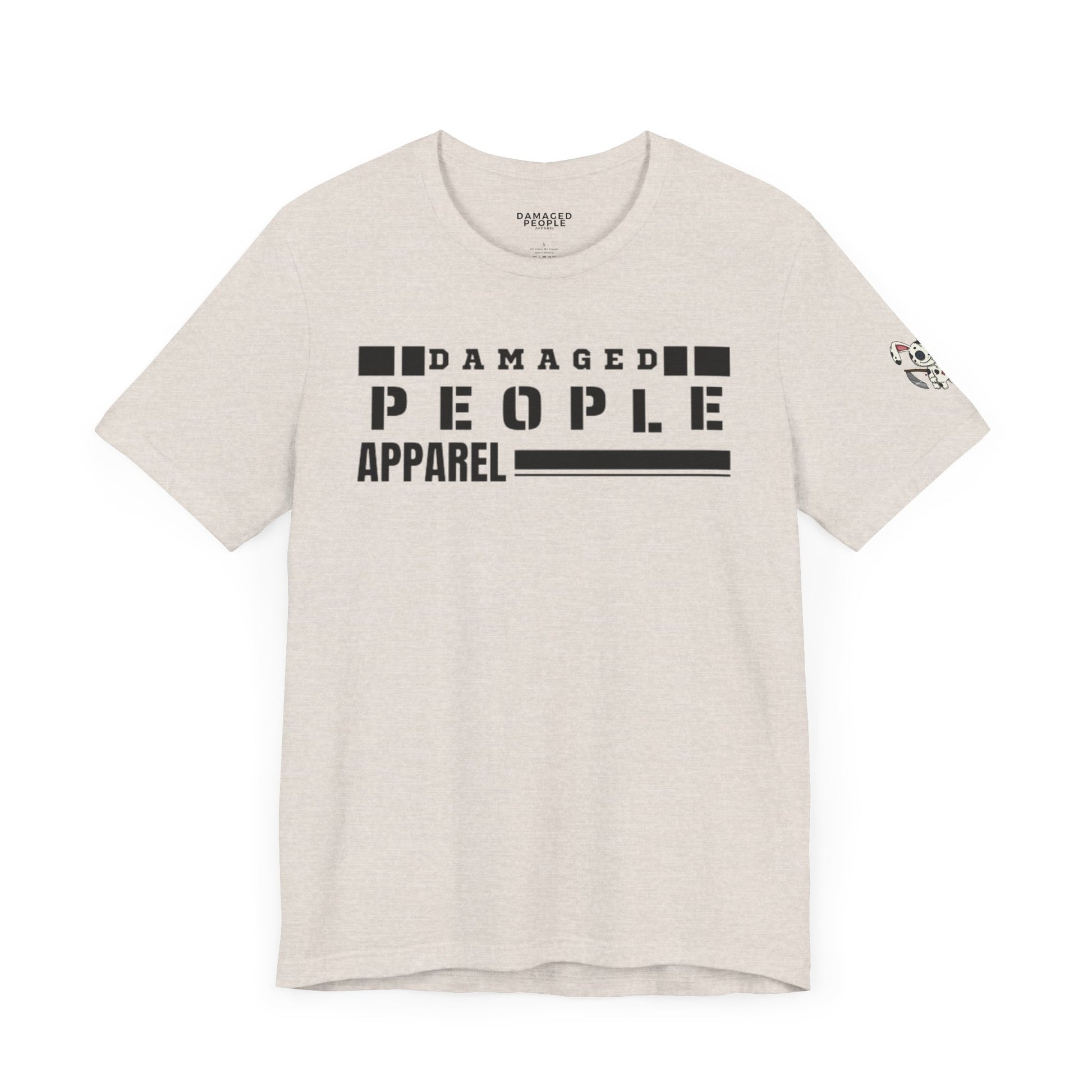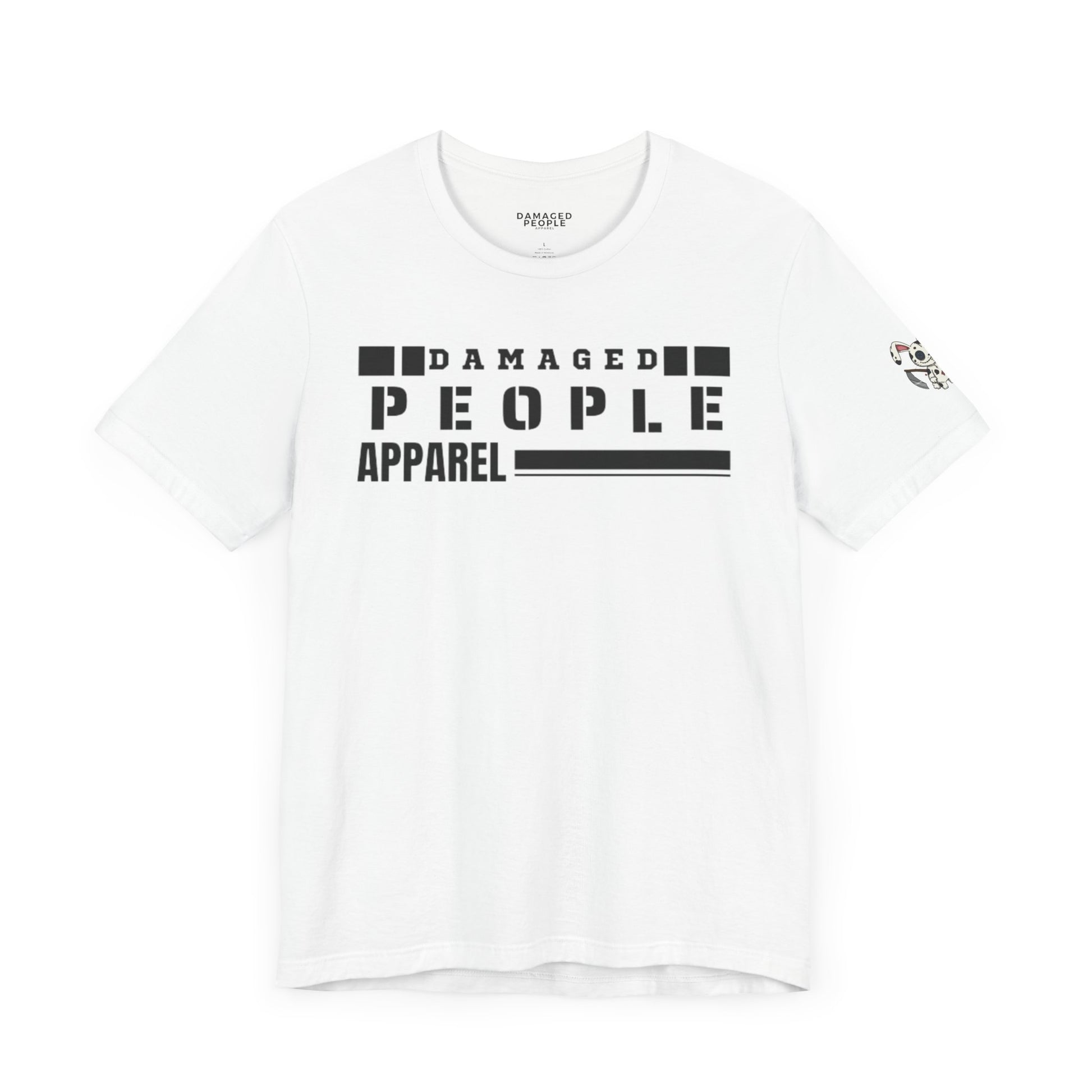 A bold writing unisex jersey short sleeve tee from damaged people apparel. This tee is perfect for those who want to make a statement with their clothing. It can fit seamlessly into a casual wardrobe and is relevant for everyday wear, concerts, festivals, and protests.