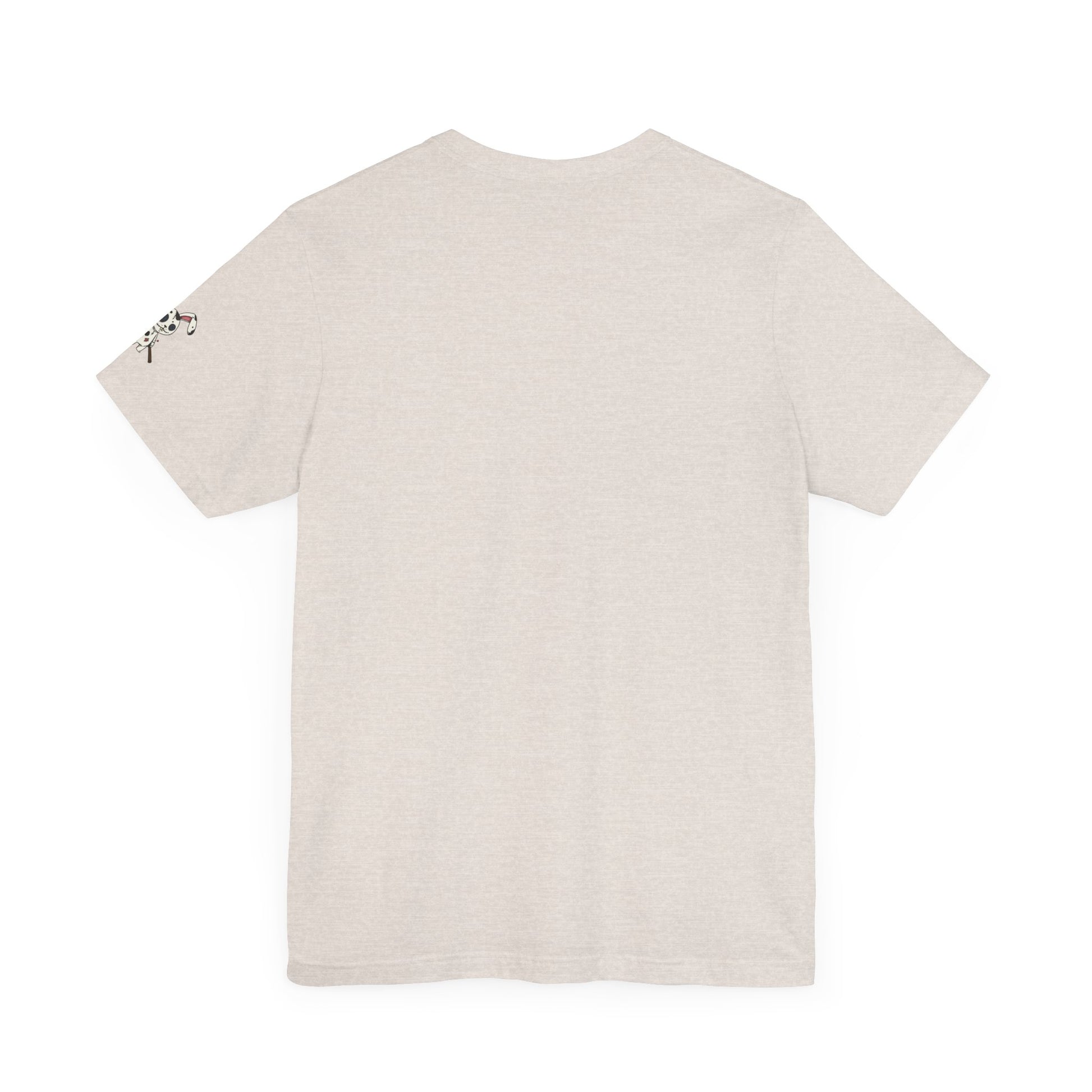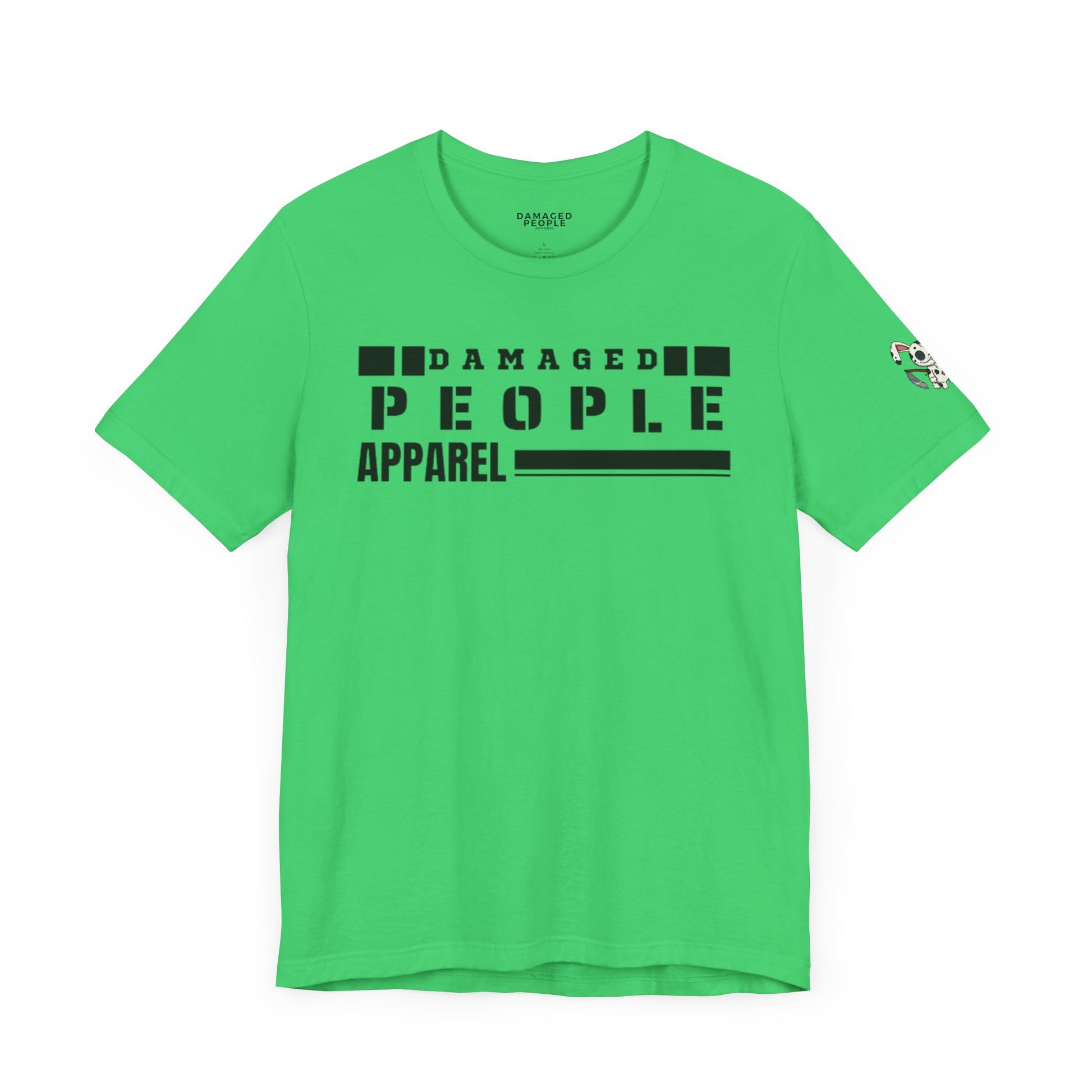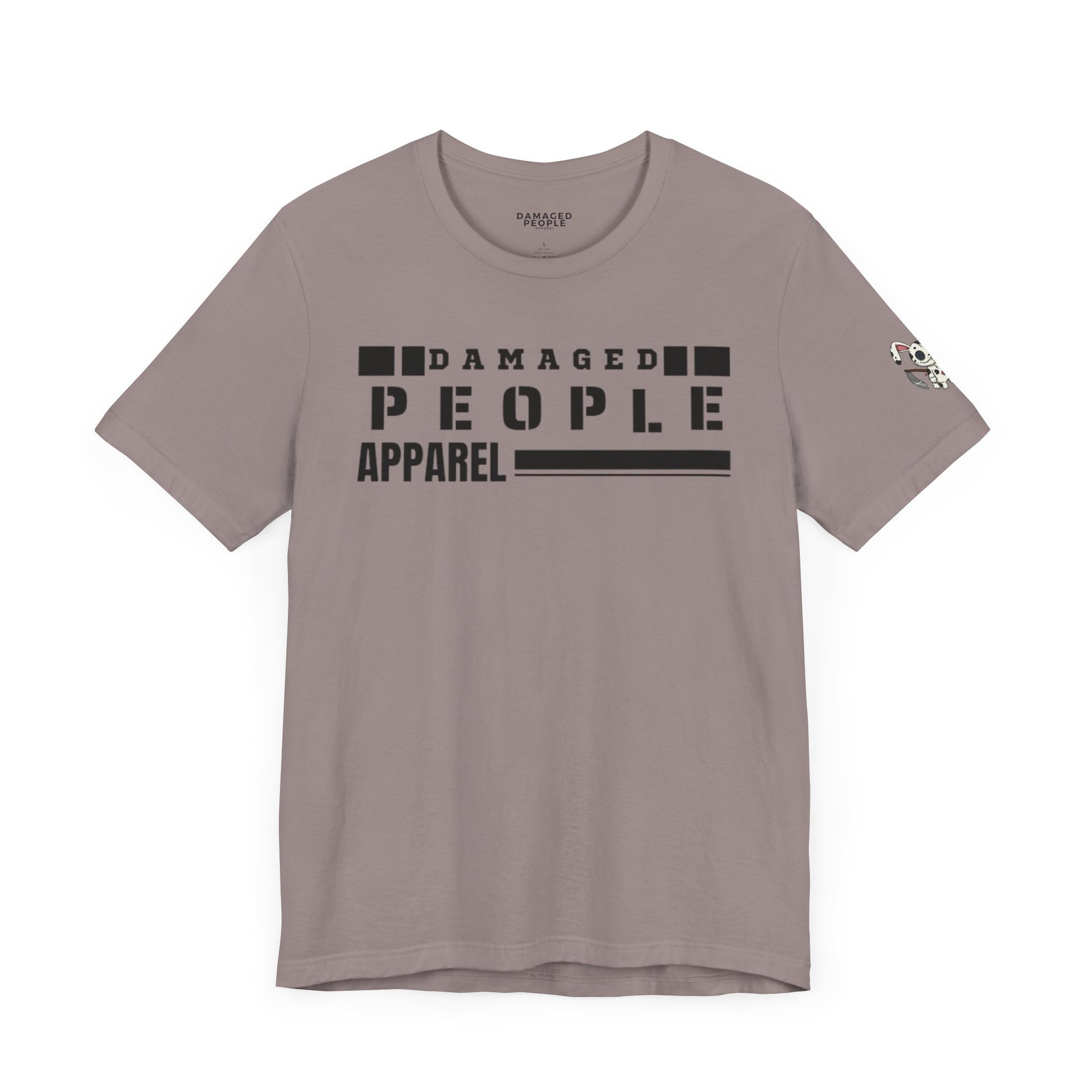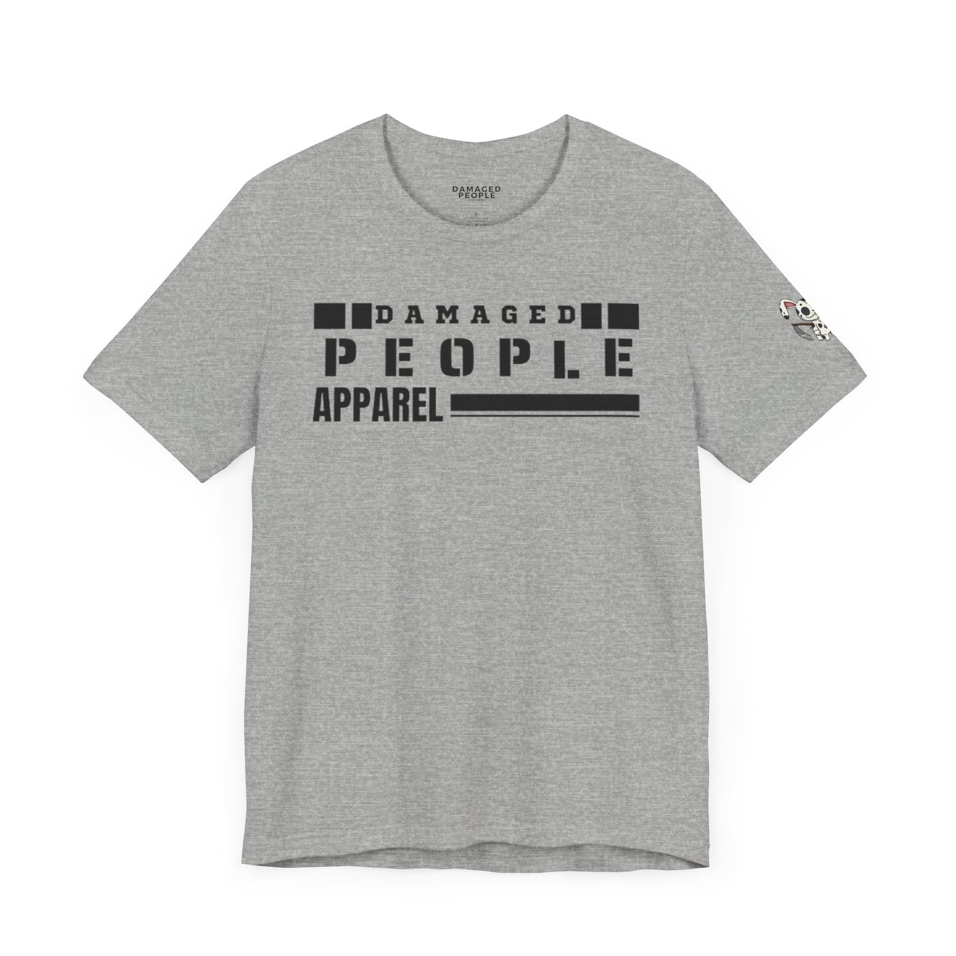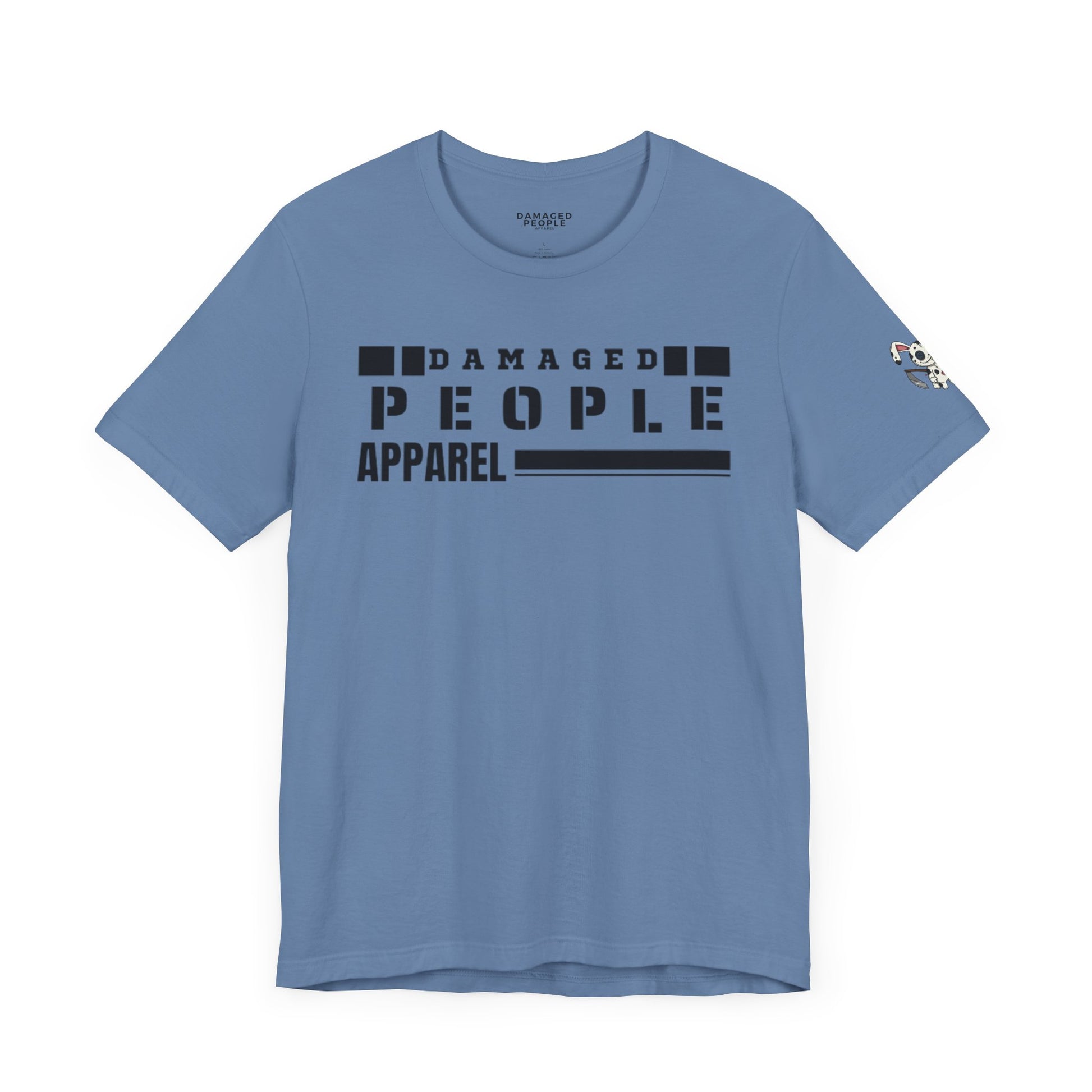 A bold writing unisex jersey short sleeve tee from damaged people apparel. This tee is perfect for those who want to make a statement with their clothing. It can fit seamlessly into a casual wardrobe and is relevant for everyday wear, concerts, festivals, and protests.
